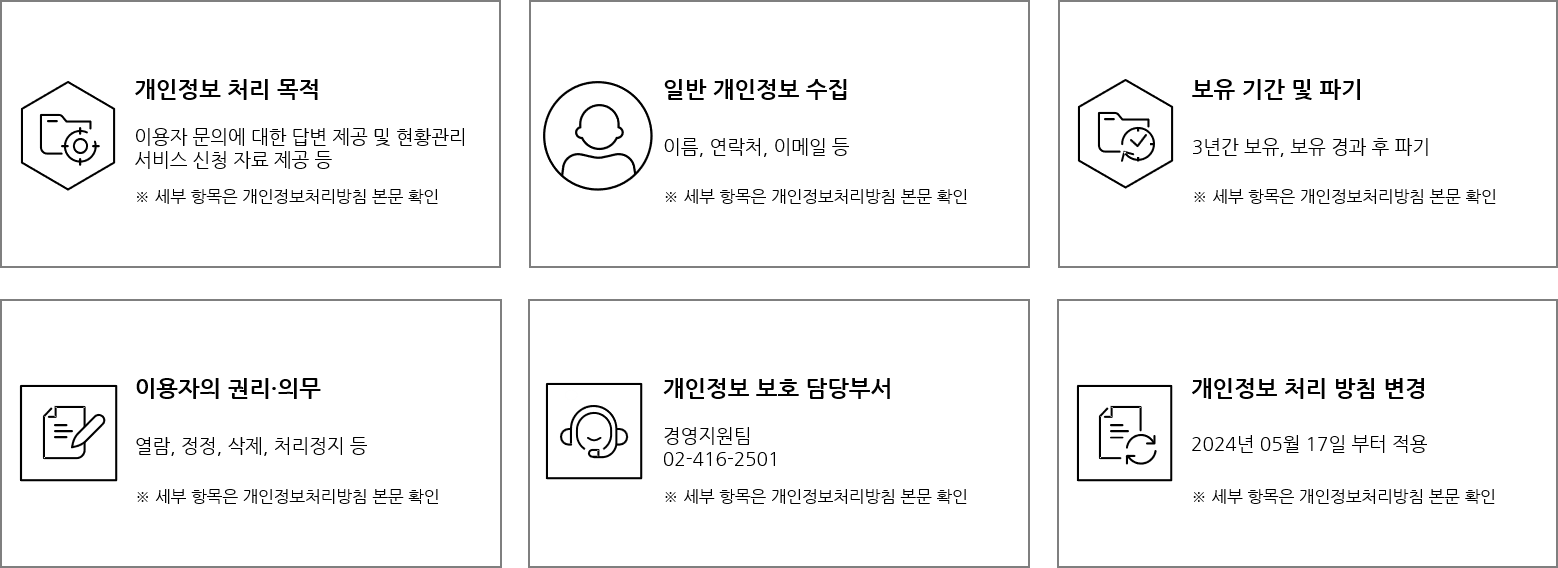 회사는 원활한 개인정보 업무처리를 위하여 일부 개인정보 처리 업무를 위탁하고 있으며 위탁 계약 체결 시 관련 법령에 따라 수탁자가 개인정보를 안전하게 처리하는지를 감독하고 있습니다. 위탁업무의 내용이나 수탁자가 추가, 변경될 경우에는 지체 없이 관련 법령에 따른 사전 동의 안내 또는 본 개인정보 처리방침을 통하여 공개하도록 하겠습니다.